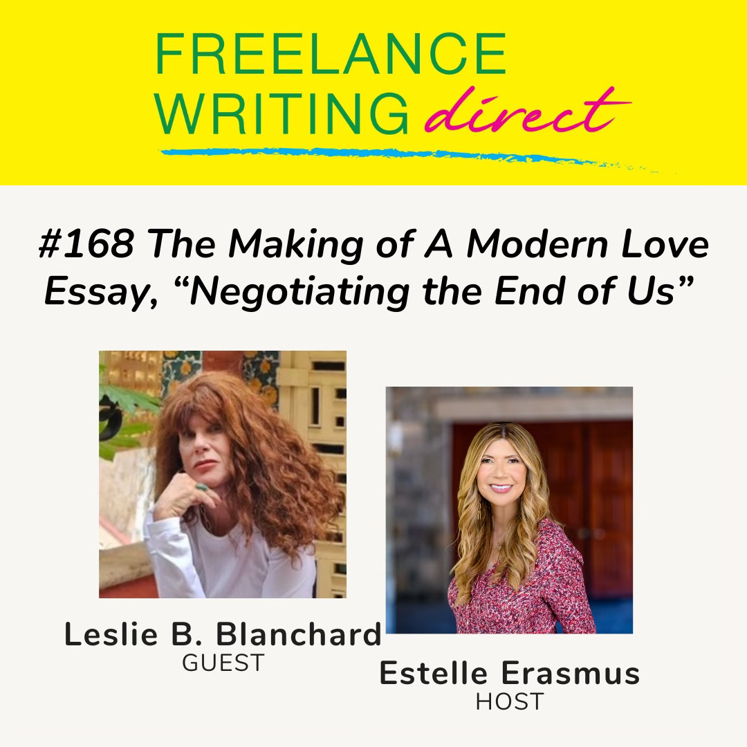 Estelle Erasmus is an award-winning journalist, TEDx speaker, and author of Writing That Gets Noticed. She is the founder, executive producer, and host of Freelance Writing Direct and an adjunct professor at NYU. Her work has appeared in more than 150 publications, including The New York Times, The Washington Post, WIRED, PBS/Next Avenue, The Independent, and AARP The Magazine. She has served as editor in chief of five national magazines.